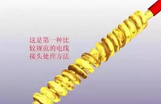 在家裝中是不應(yīng)有接頭的,特別是在線管內(nèi)更不能有接頭,如果有接頭也應(yīng)該是在電線盒內(nèi)。通常的電線接頭都是這樣的接法,才能保證電線接頭不發(fā)生打火、短路,與接觸不良的現(xiàn)象。