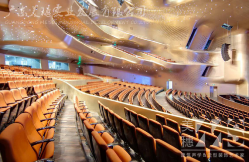 因此,對于內(nèi)裝飾設(shè)計(jì),不但要起到視覺美化的作用,更重要的是通過內(nèi)裝飾的造型和材質(zhì)的運(yùn)用,使演藝廳的聲學(xué)效果達(dá)到最佳。也就是要把音樂和美術(shù)完美的結(jié)合起來。創(chuàng)造出裝飾效果上和聲學(xué)效果上都比較完美的觀演空間。