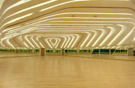 這些不規(guī)則的“環(huán)抱形”正是采用GRG材料做出來的, GRG材料是一種以優(yōu)等天然改良石膏為基料,添加石膏專用增強玻璃纖維和微量改性添加劑,制成的預(yù)鑄式新型裝飾材料。其造型的隨意性使其成為要求個性化的建筑師的首選,為了裝飾的需要可制成各種圖案式平面板-鏤空板、各種功能型產(chǎn)品及各種藝術(shù)造型-雙曲板,是目前國際上建筑材料裝飾界最流行的更新?lián)Q代產(chǎn)品。